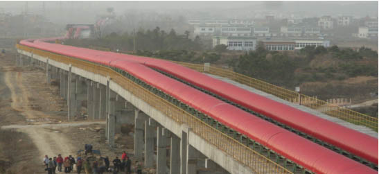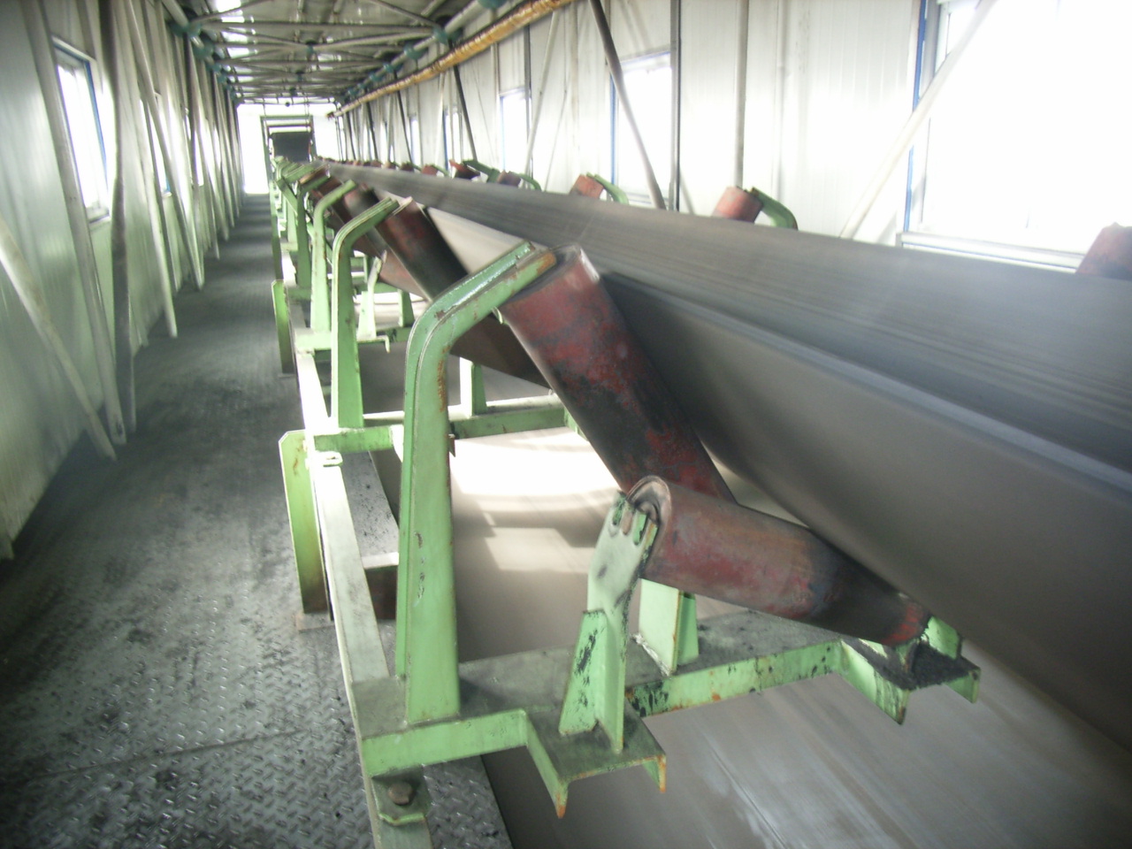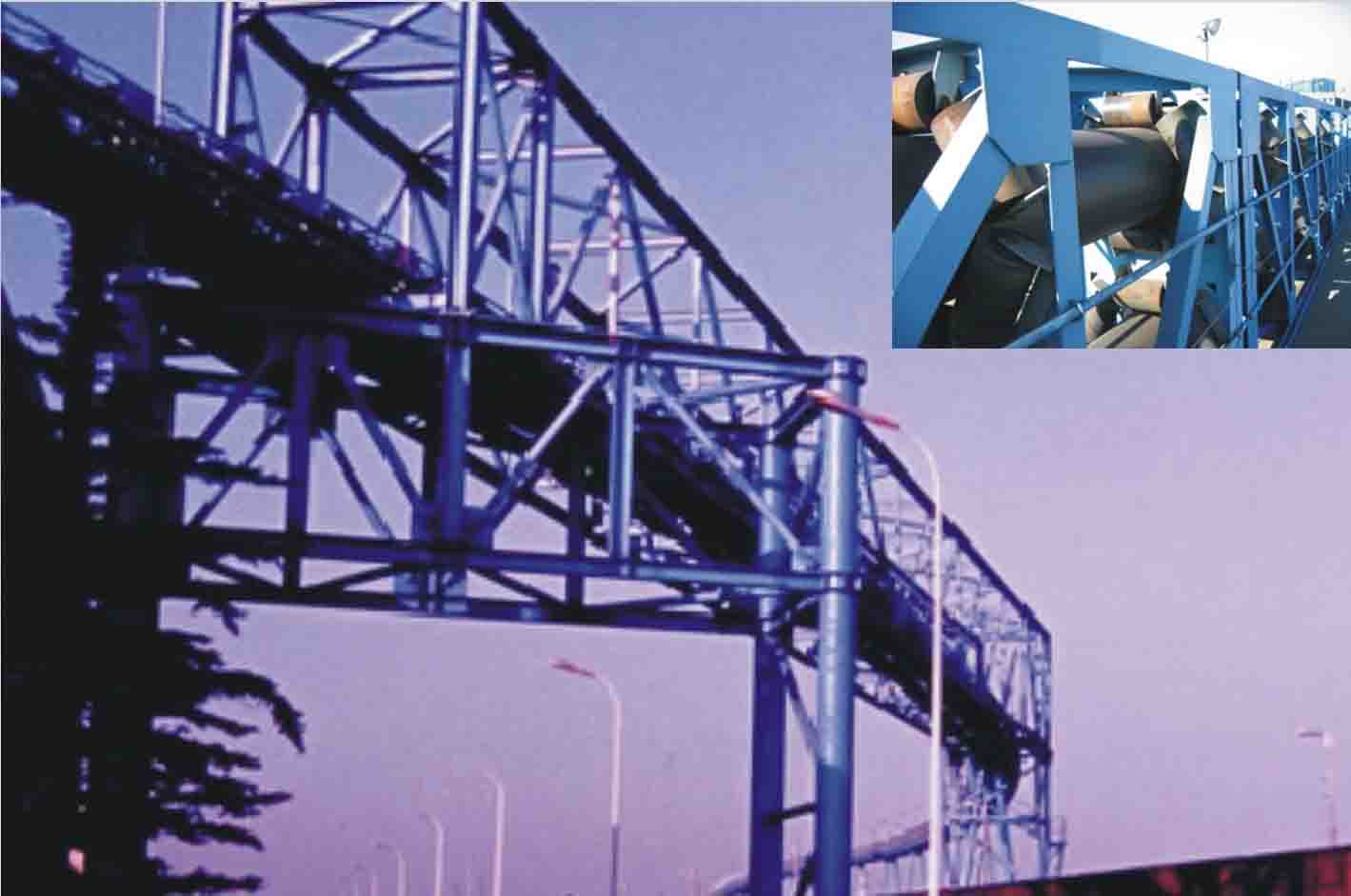 我公司所生產(chǎn)的帶式輸送機(jī),首先是運(yùn)行可靠,在許多需要連續(xù)運(yùn)行的重要的生產(chǎn)單位,如發(fā)電廠煤的輸送,鋼鐵廠和水泥廠散狀物料的輸送,以及港口內(nèi)船舶裝卸等均采用帶式輸送機(jī)。其特點(diǎn)動(dòng)力消耗低,使用過程中阻力小,對(duì)貨物的磨損和破壞均小,生產(chǎn)效率高。不僅在煤廠、鋼鐵廠和礦廠運(yùn)用輸送機(jī),還在小型隧道內(nèi)均可以使用,長(zhǎng)度短則幾米,長(zhǎng)可達(dá)10米以上,也可以架設(shè)在地面交通混亂和危險(xiǎn)地區(qū)的上空。如在一點(diǎn)或多點(diǎn)受料.也可以向多點(diǎn)或幾個(gè)區(qū)段卸料,需要時(shí),還能把各堆不同的物料進(jìn)行混合。